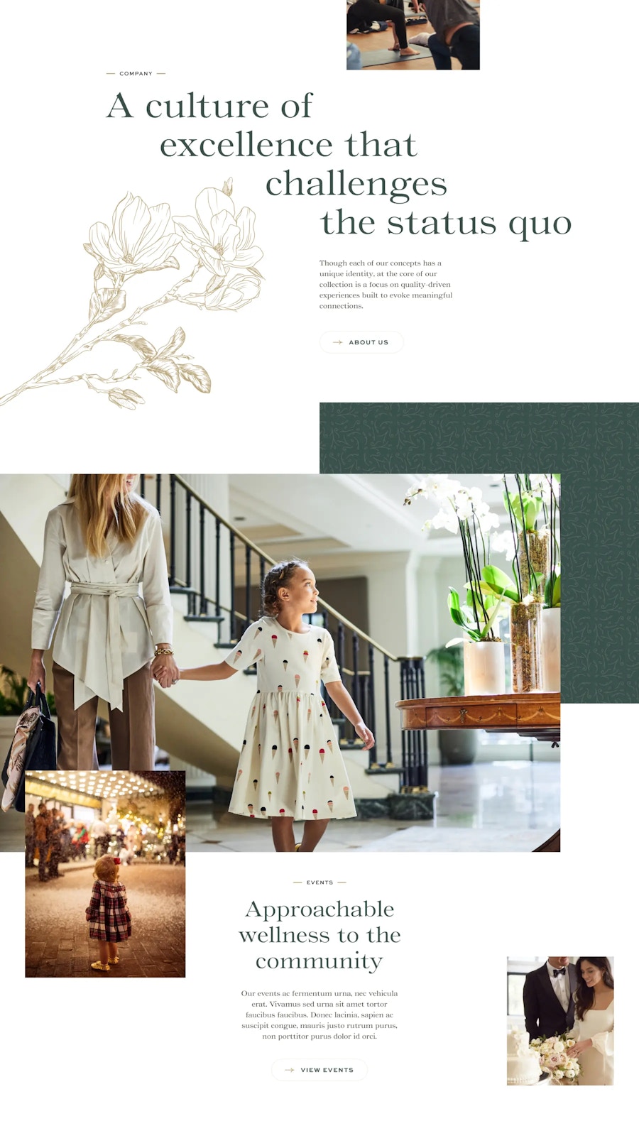We incorporated hand drawn graphics that harmonize with their logo, enhancing the brand identity. Subtle and flowy animations were integrated, mirroring the natural elements central to their branding. The use of white space, incorporating flora and fauna, and intriguing the user with playful interactions, allowed us to capture their essence on this brand.