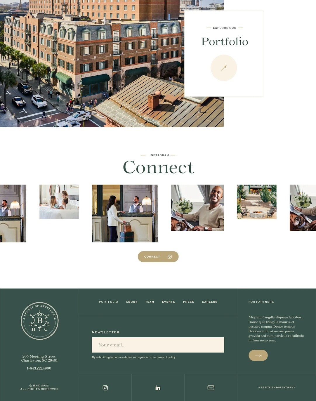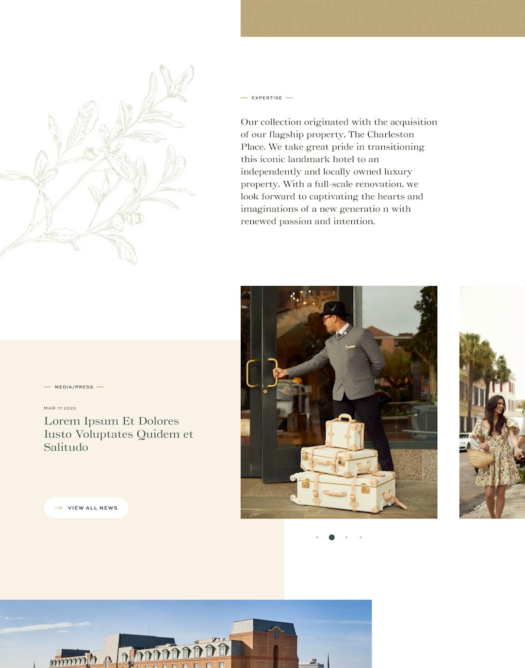 The Beemok Hospitality Company hired Buzzworthy Studio to design and develop a brand new website that beautifully showcases its portfolio of luxury hotels and world-class entertainment venues in South Carolina.This site stands as a whimsical exhibition of their opulent assortment of hotels and restaurants. As part of our brief, we made sure that upon launch, content was well-optimized for high-value keywords, the site was lightning-fast, error-free, and that it was submitted to Google for crawling.