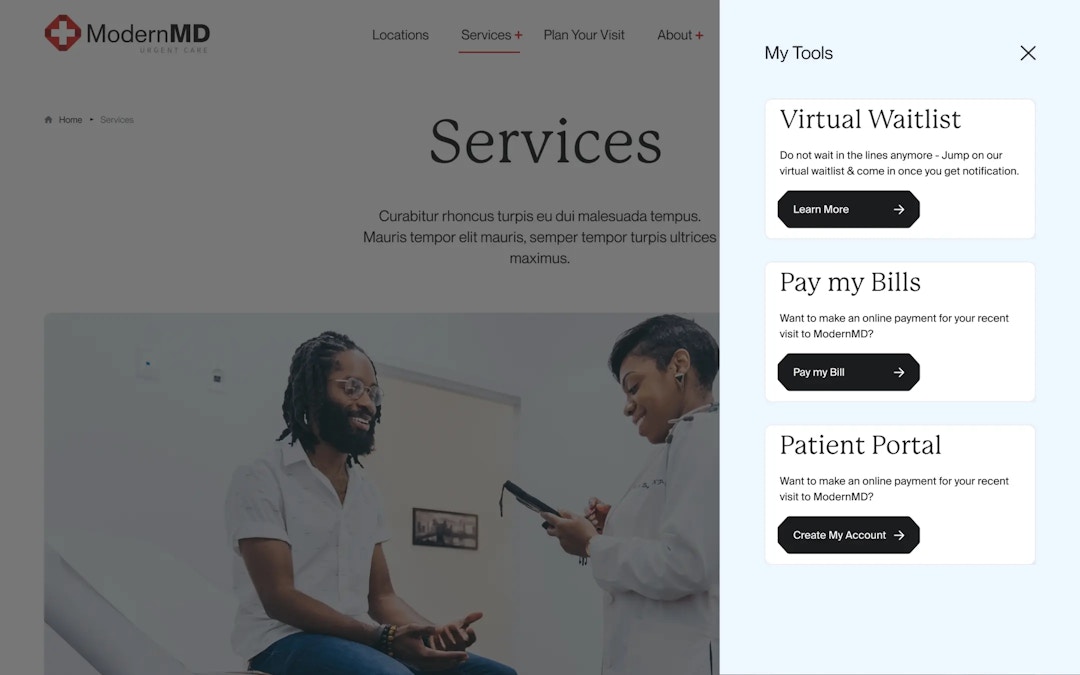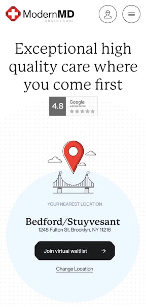 Our clean design approach merges aesthetics and functionality, much like the interior of a Modern MD facility. Each line, color, custom icon, and motion element is meticulously selected for a visual narrative that deeply resonates. This design doesn't just enhance aesthetics; it cultivates trust, making the decision to choose a new urgent care an easy one.