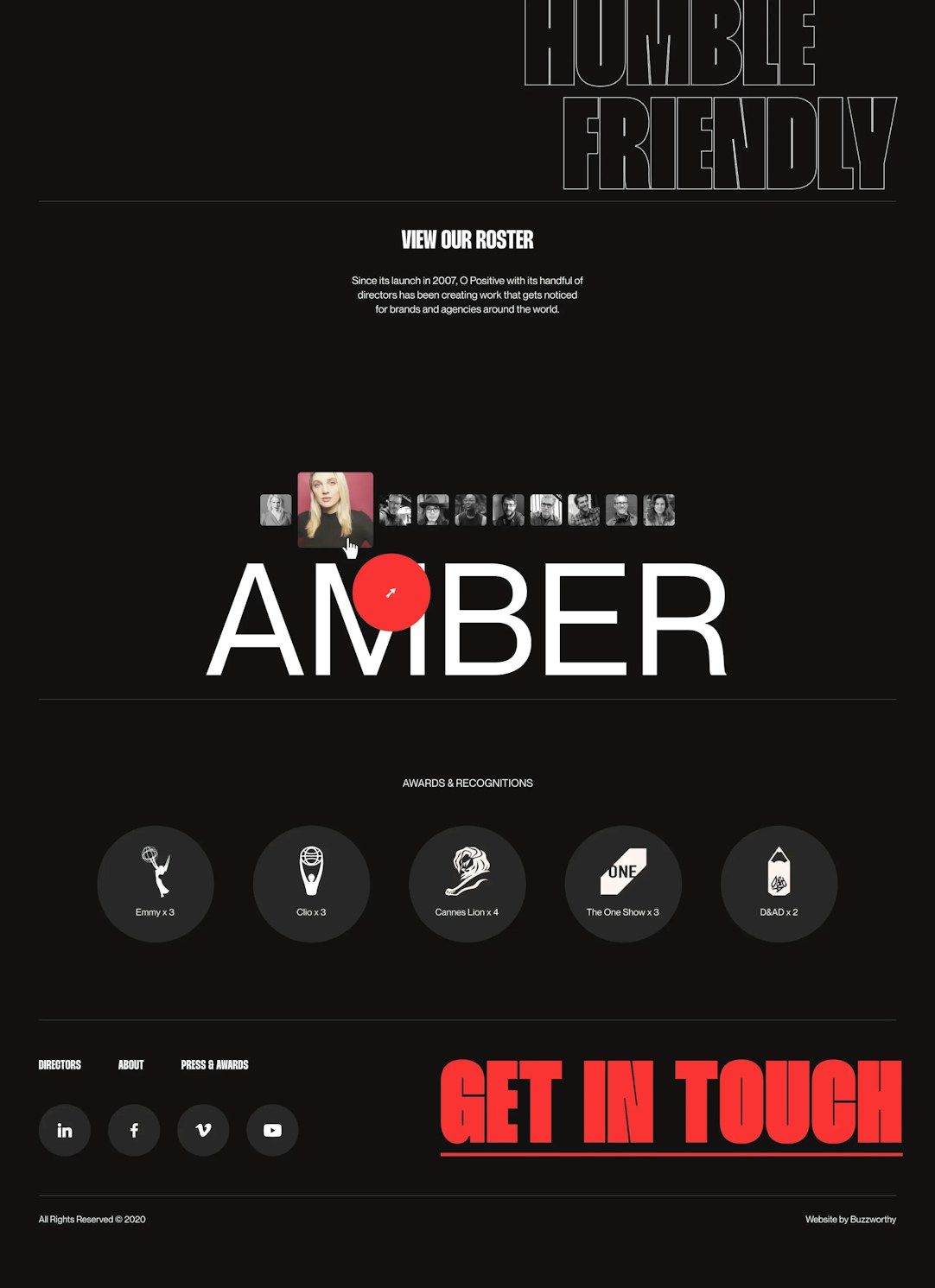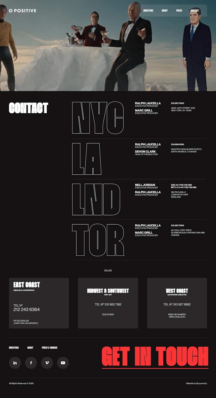 A team of just 8 directors proves that size doesn't limit them from collaborating with the world's most prestigious companies and delivering top-tier work. We've incorporated high-quality imagery throughout the site, featuring some of the industry's biggest names. This not only spotlights the star power but also underscores the excellence of their work through riveting visuals.